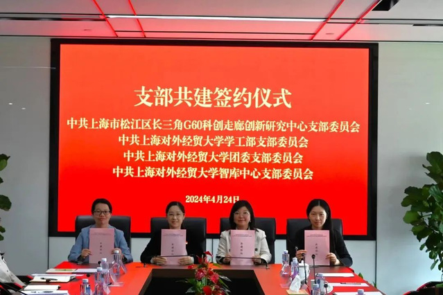 会上,学工部党支部、团委党支部、国际经贸创新治理研究院(智库中心)党支部与G60创新研究中心党支部共同签署支部共建协议,加强校地合作,让党建成为共学共研共商共建的红色引擎,共同推动人才培养高质量发展。