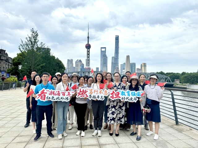 为更好地服务贸易强国和教育强国建设,引导党员教师主动在实践中加强党的创新理论武装,不断提升党性修养和专业素养, 7月2日,招生就业处党支部联合教务处党支部赴虹口北外滩开展“看‘潮涌百年’红色北外滩,燃‘笃行不怠’昂扬斗志,担‘教育强国’时代使命”主题实践教学活动。
