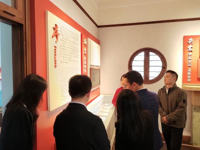 会前,在黄芳的带领下,学校机关党委一行参观了复旦大学《宣言展示馆》。展示馆以丰富的历史资料和生动的艺术形式,展现了陈望道老校长追寻真理的故事。