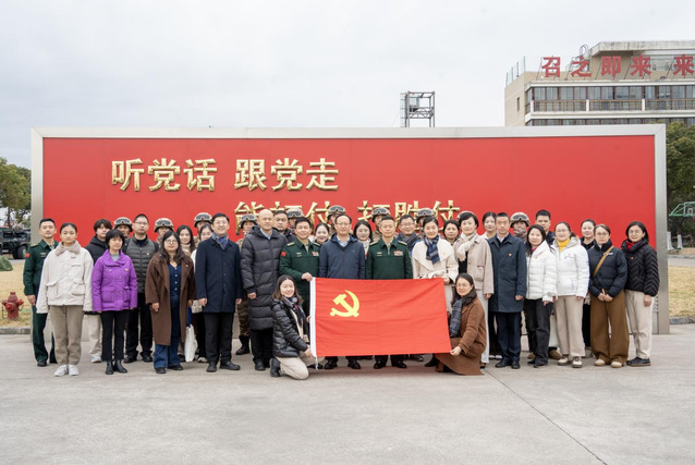 为深入学习贯彻党的二十届三中全会精神,进一步加强军校协同建设,深化军民融合,提升基层党支部的凝聚力和战斗力,12月25日上午,学工部党支部、教务处党支部20余名教师党员代表及2025年上半年参军入伍的意向学生代表共同前往武警上海总队执勤第二支队某部,联合开展了一场“进军营、学作风,强党性、勇担当”的主题党日活动。