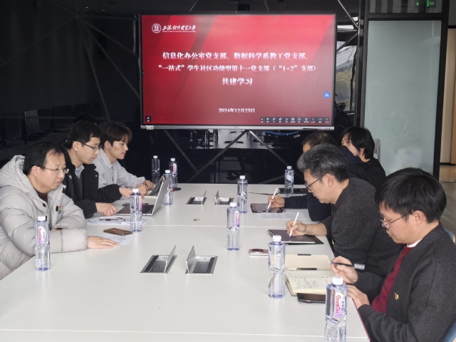 为深入学习贯彻全国教育大会精神,巩固师生党员集中培训学习成果,信息化办公室党支部联合统计与信息学院数据科学系教工党支部、“一站式”学生社区功能型第十一党支部,于2024年12月25日下午开展了“1+2”牵手党支部共建学习研讨活动。活动由统信学院数据科学系教工党支部书记赵海琼主持。
