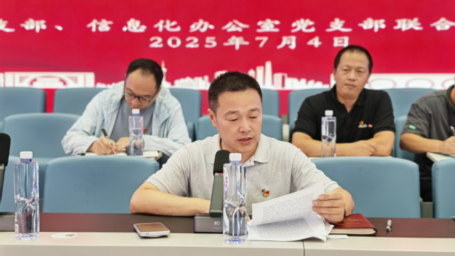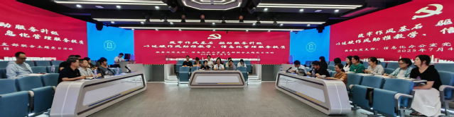 为推进深入学习贯彻中央八项规定精神学习教育,推动作风建设走深走实,7月4日,教务处党支部与信息化办公室党支部在学思楼A1联合开展了以“以过硬作风助推教学、信息化管理服务提质” 为主题的党日活动,通过多维度学习交流凝聚教育数字化转型共识,两个支部全体党员参加了活动。