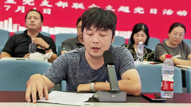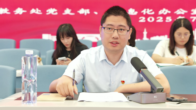 围绕如何将文件精神转化为实际工作举措,信息化办公室党支部柴铭、教务处党支部陈豪结合各自岗位展开交流。两人从教育数字化与教学管理、服务优化的融合路径出发,分享了具体思路与实践方向,引发在场党员的深入思考。