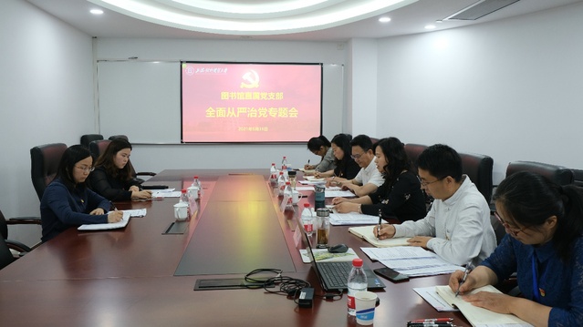 为落实全面从严治党的政治责任,推动图书馆全面从严治党落到实处,图书馆直属党支部于2021年5月31日上午在图书馆523室召开全面从严治党专题会议,校纪委(监察专员办公室)监督检查室主任刘春华、纪检监察员周萍出席会议,图书馆全体领导成员参加会议。会议由图书馆直属党支部书记王群主持。