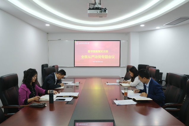 为进一步推进全面从严治党工作,落实图书馆党组织全面从严治党政治责任。图书馆直属党支部于2021年10月12日上午在图书馆523室召开下半年全面从严治党专题会议,图书馆全体领导班子成员参加会议。