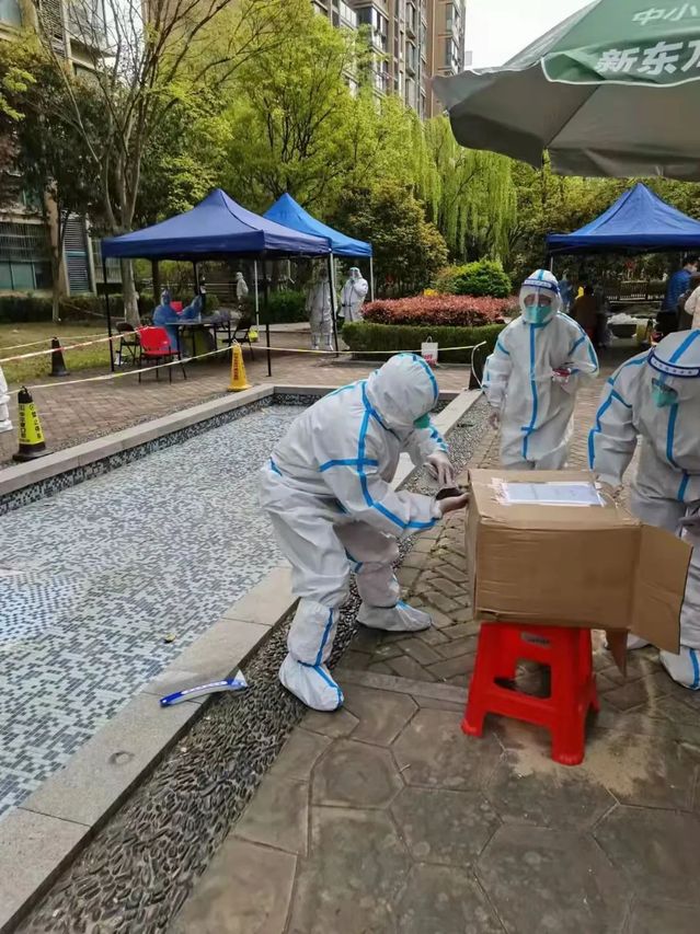 国际商务外语学院商务英语教工党支部纪检委员周媛积极参与社区核酸检测引导工作