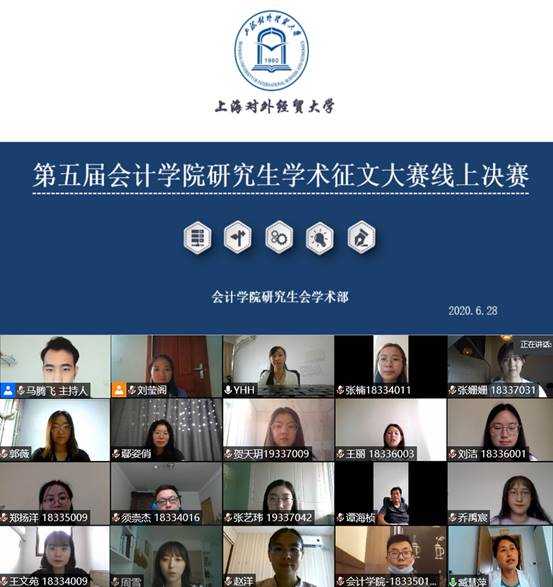 6月28日下午,我院祝贺60周年校庆——会计学院研究生学术论坛,暨第五届研究生学术征文大赛决赛在腾讯会议线上成功举行。本次活动面向全校研究生进行学术科研征文研讨,历时三个月,共收到校内各专业同学投稿19篇。经过初赛专家组盲审打分,共有12篇论文进入决赛。今天,会计学院副院长杨慧辉教授、臧慧萍副教授、赵洋博士、鄢姿俏博士作为嘉宾评委出席本次活动。
