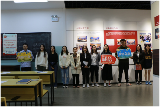 在校史馆二楼的还原教室中,诚信先锋班展演了《诚信立业、诚信立身》情景剧。自2019年以来,学院深化诚信文化建设,打造纵向互通之翼——构筑“四段式”诚信教育模式;横向交融之翼——形成“双轨并行式”诚信教育模式;“诚信先锋班”试点之翼——践行诚信教育落细落小落实,将诚信价值内核塑造融入到思想政治教育的全过程,培养具有“诚信品格、创新意识、实践能力、国际视野”的高素质应用型财会人才。在本次“四史”学习精品党课中,诚信先锋班用有力的行动涵养表达了诚信精神,做到了爱护信誉和珍惜诺言,传播了会计学子立身与立业的诚信理念,弘扬了贸大的精神与力量,践行了社会主义核心价值观,汇聚了实现中国梦的磅礴力量。