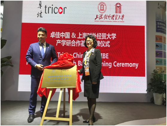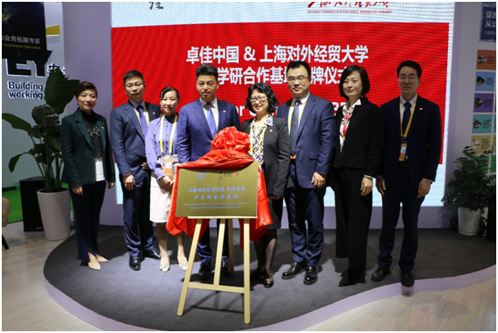 陈洁与张海亮共同为“上海对外经贸大学 卓佳中国产学研合作基地”揭牌。