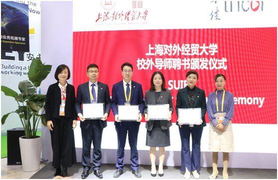 会计学院副院长杨慧辉、党委副书记张晴晴共同为此次受聘的卓佳中国财务官林建伟、首席运营官游旭挺、商务服务总监金峰梅、人力资源总监王艳颁发校外导师聘书。这也将继续丰富学院“三全育人”校外导师库资源,为学院人才培养、社会协同育人、产学互动提供更多有力支持。