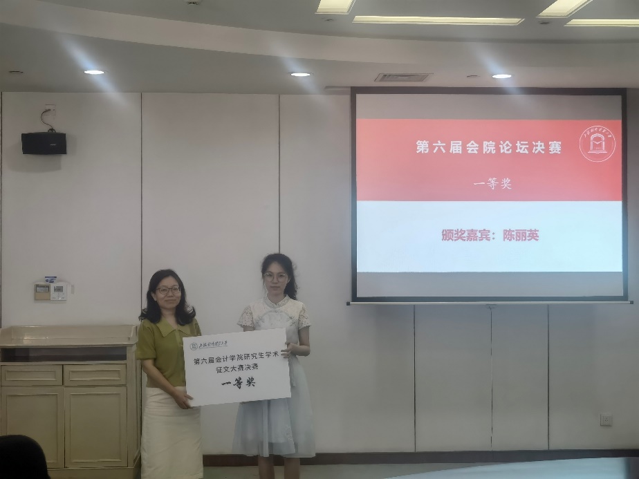 为进一步营造浓厚的研究生科研创新氛围、强化研究生创新意识、应用创新能力、学术思维和研究水平,会计学院于6月23日下午,在信息楼501圆形报告厅隆重召开第六届“学术为魂,见证未来”会院论坛学术征文大赛决赛暨 “毓秀”研究生创新项目资助计划立项颁证仪式。会计学院副院长杨慧辉教授、审计系副系主任陈丽英副教授、会计系教工党支部书记何开刚博士、青年教师闫珍丽博士、以及研究生会书记谭海桢老师出席本次活动。