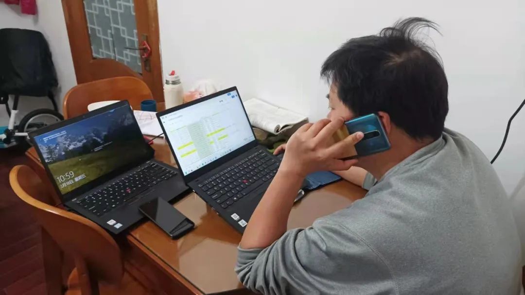 谭海桢老师居家隔离期间在线上展开工作,始终关心关爱着校区学生,制作表格,几台电脑手机同时运作,繁忙的电话消息背后是他的责任,更是关心。他明白,一切都是为了学生的安康,一切都是为了更美好的明天。