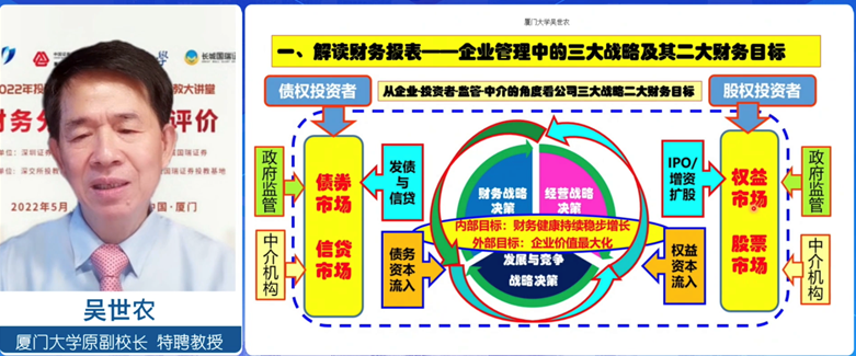 56日下午,学院数百名MPAcc研究生在线聆听了主题为“财务分析与绩效评价”的学术讲座。本次讲座由厦门大学副校长、博士研究生导师、国家自然科学基金委员会委员、国务院学科评议组成员、全国工商管理硕士(MBA)指导委员会副主任、教育部管理学部学部委员吴世农教授讲授