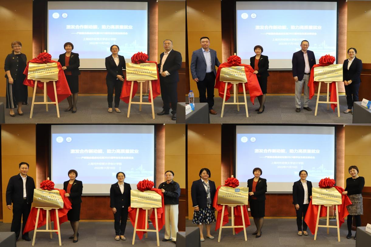 在产学研合作新基地授牌仪式上,裴瑱和张天舒代表学院分别与浪潮集团、立信会计师事务所(特殊普通合伙)、上海荣正企业咨询股份有限公司、上会会计师事务所(特殊普通合伙)、致同会计师事务所(特殊普通合伙)、天健会计师事务所(特殊普通合伙)上海分所、天职国际会计师事务所(特殊普通合伙)上海分所、上海文汇审计咨询管理中心这8家企业的代表,共同为产学研合作基地揭牌。