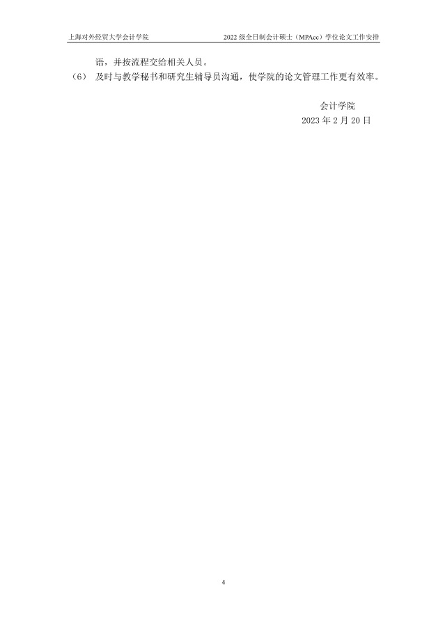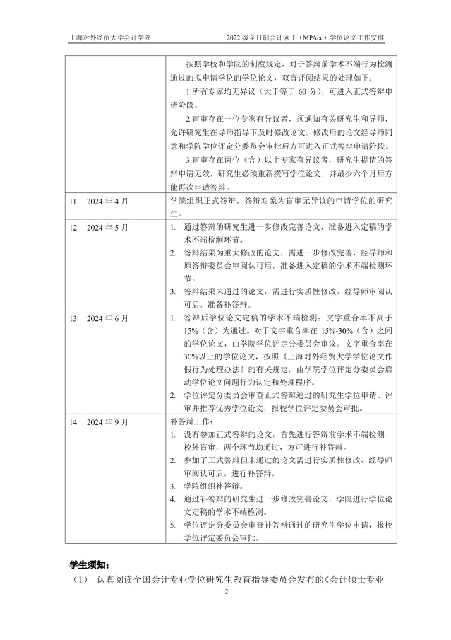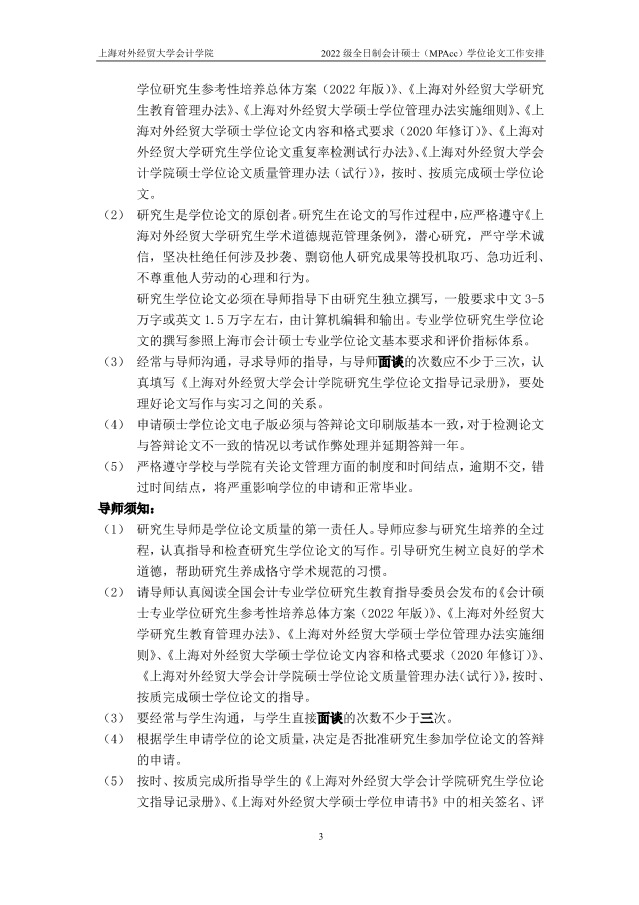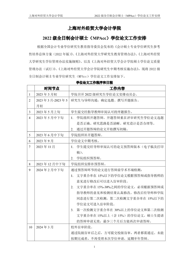 上海对外经贸大学会计学院2022级全日制会计硕士(MPAcc)学位论文工作安排