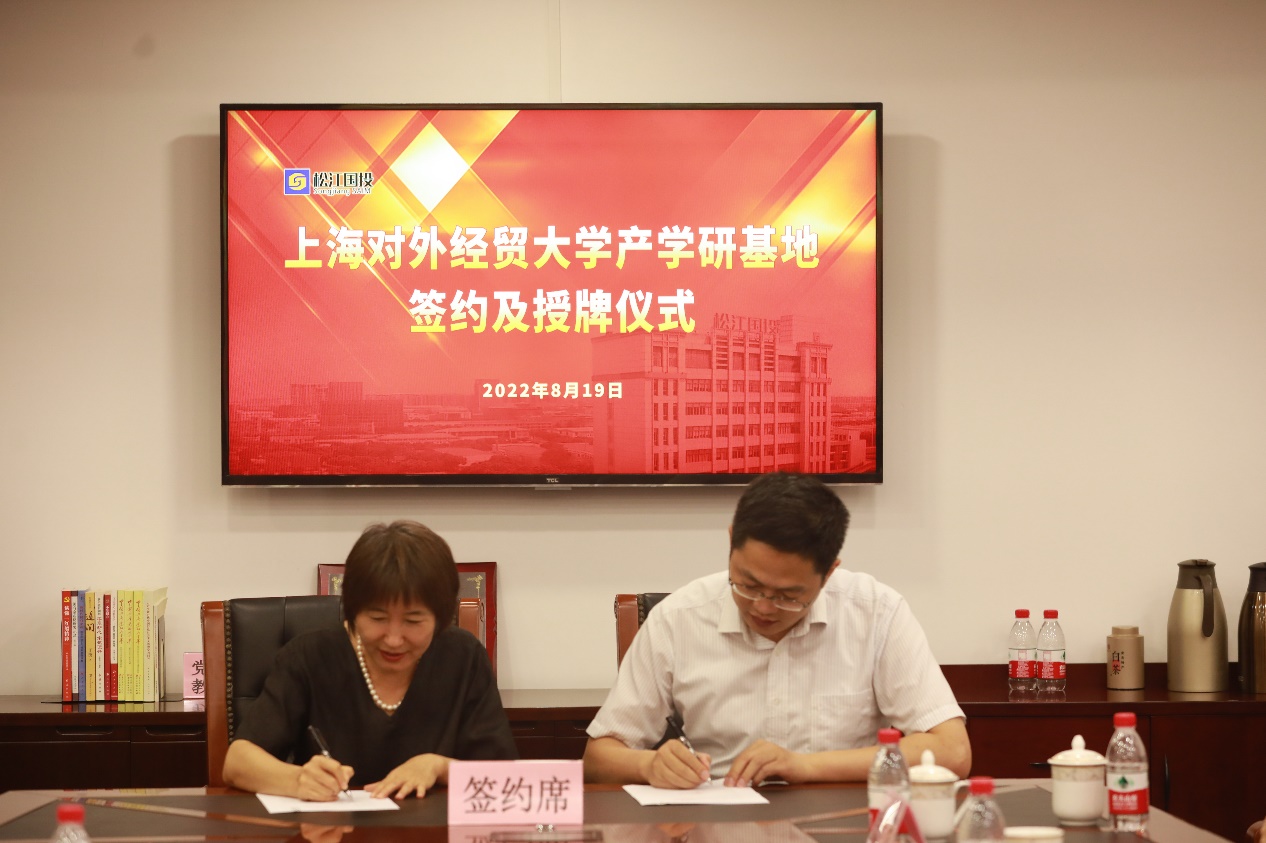 裴瑱和张健分别代表双方签订产学研基地合作框架协议。
