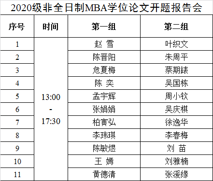 请大家务必提前合理安排好时间,准时参加学位论文开题,不得缺席!未参加论文开题者不能进入论文下一程序。如有问题,请及时与MBA教学事务办公室联系,13636639961。