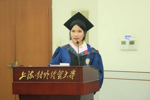 马克思主义学院2021届上海市优秀毕业生获得者赵晓慧作为毕业生代表发言,她分享了两年半研究生生涯的求学感悟,她在发言中饱含对母校、老师的感恩之情,立志践行校训精神,为祖国的发展贡献力量。