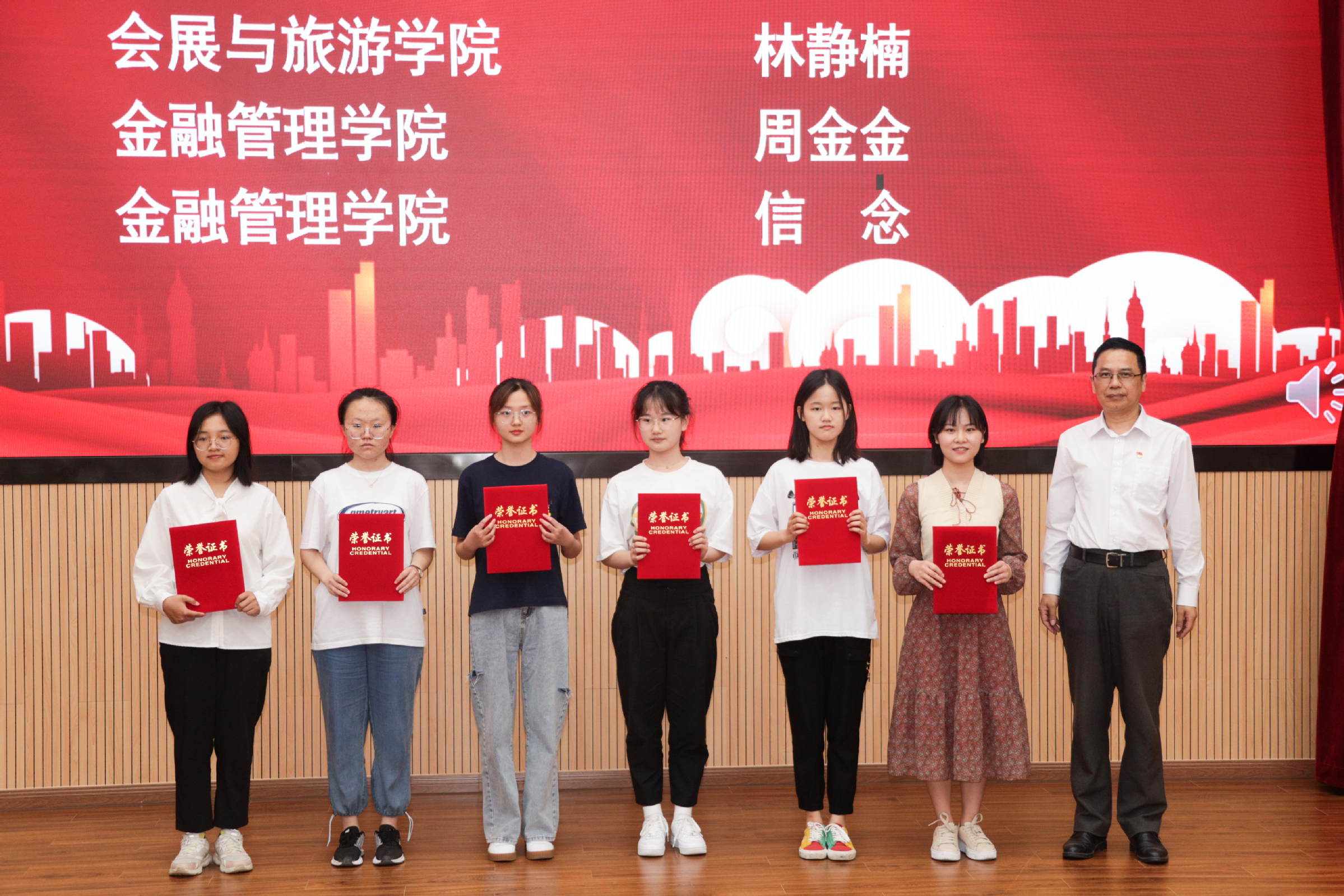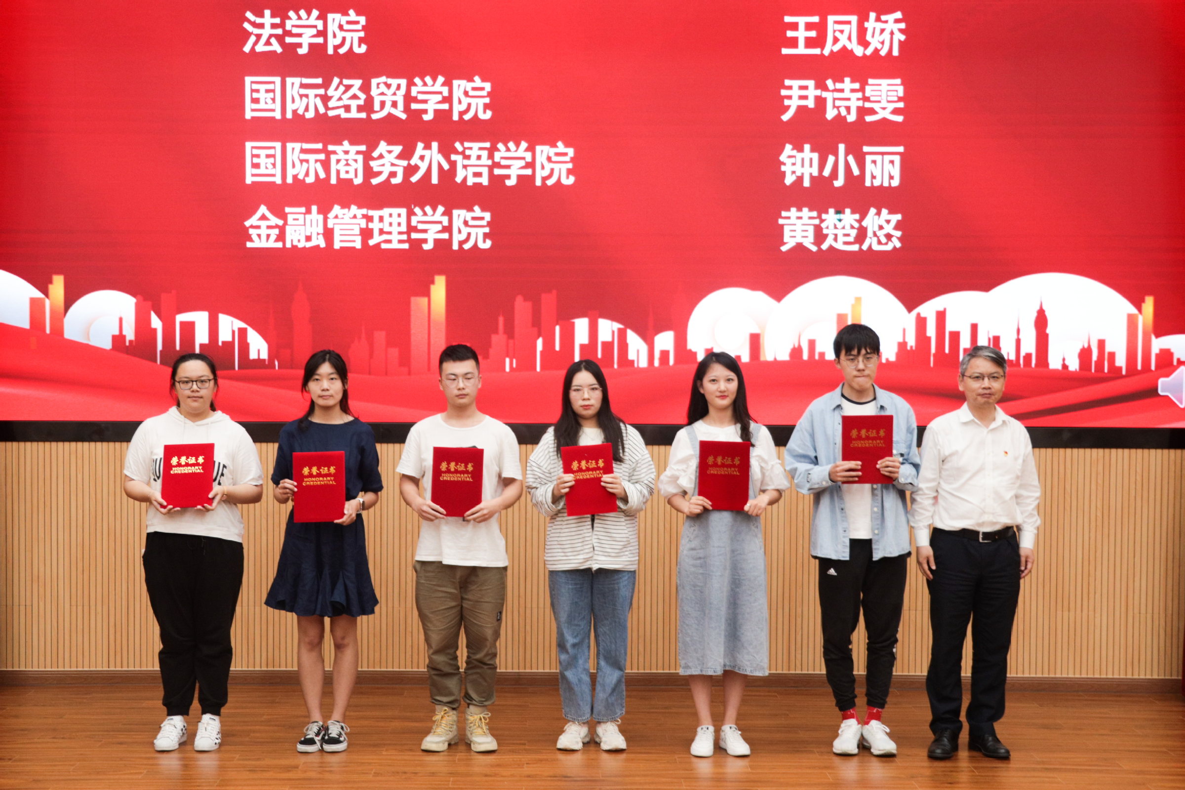 分享会上庾向芳宣读了“初心如磐 百年峥嵘——庆祝建党百年百篇征文”与“学楷模 悟精神——寻访我心目中的优秀共产党员”专题调研活动一等奖名单,祁明、徐永林为获得一等奖的同学颁发了证书。
