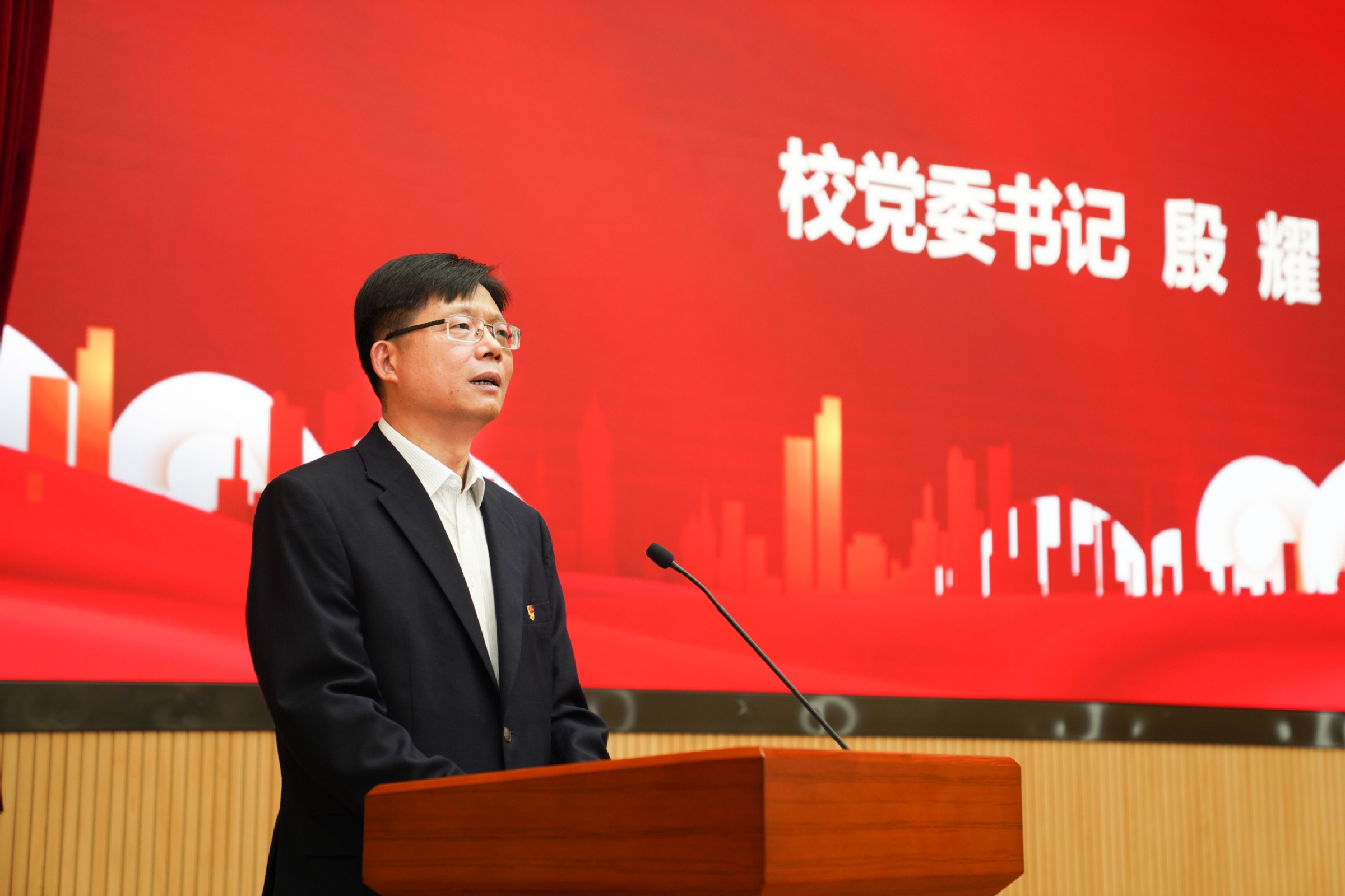 5月28日,马克思主义学院在思源报告厅举办“追寻百年足迹 传承伟大精神——思政课堂学党史”分享会,校党委书记殷耀,党委副书记、副校长、马克思主义学院党总支书记祁明,副校长徐永林出席会议。党委统战部部长、马克思主义学院院长秦淑娟,教务处副处长(主持工作)朱建明,马克思主义学院副院长庾向芳及中国近现代史教研室主任张国义、思想道德修养与法律基础教研室主任周霞、马克思主义中国化教研室主任罗国辉、政治经济学教研室主任张耿庆、人文教研室主任李欣,学院教师与全校200多名学生共同参加了分享会。分享会由马克思主义学院党总支副书记刘海泉主持。