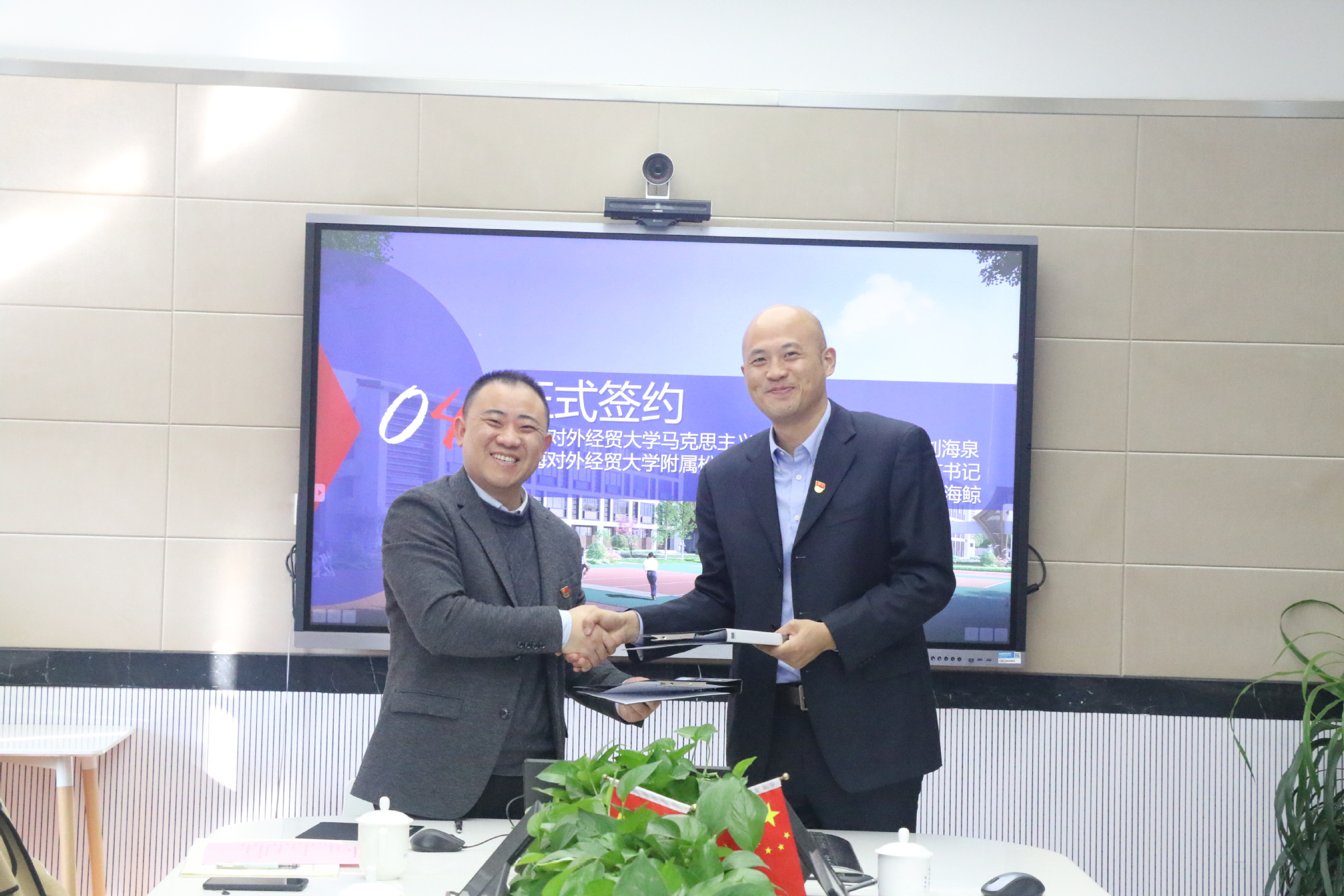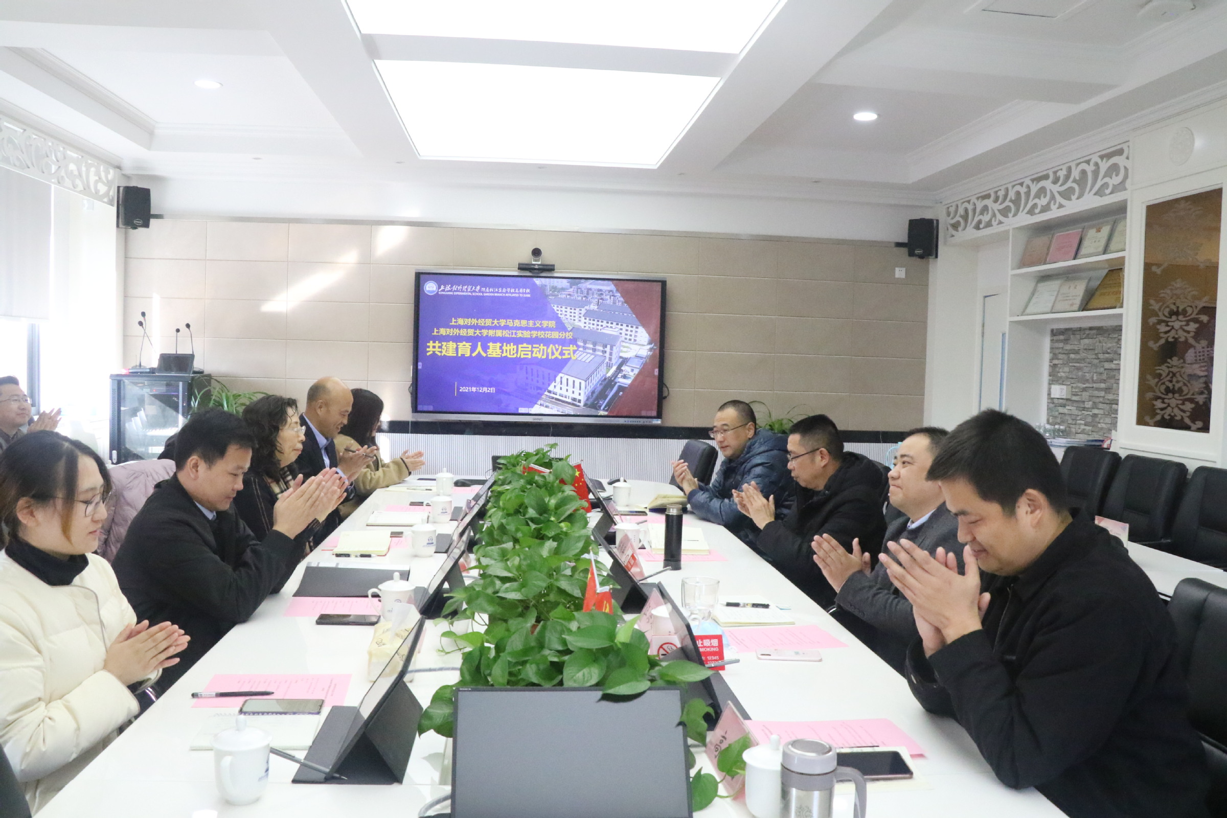 为进一步推进“大中小学思政课一体化”建设工作, 12月2日上午,我校马克思主义学院和附属松江实验学校花园分校就共建育人基地开展深度交流并举行签约仪式。马克思主义学院院长秦淑娟、党总支副书记刘海泉,附属松江实验学校校长、花园分校校长陈伟平,附属松江实验学校花园分校党总支书记汪海鲸,附属松江实验学校党总支书记张辉、副校长高仁才出席座谈会。马克思主义学院“青马思源”志愿服务队伍成员参加会议。会议由高仁才主持。