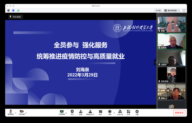 学院党总支副书记刘海泉以“全员参与,强化服务,统筹推进疫情防控与高质量就业”为题进行了专题汇报,从“一对一”沟通了解状况、实时更新“一人一档”、积极推荐就业信息、关注重点学生群体等方面介绍了学院就业的整体情况,从宏观环境、就业观念、职业规划、个人能力等角度分析了当前就业未落实学生存在的问题,从进一步拓展广度、加强深度以及提升温度等三个方面提出下一步工作打算。