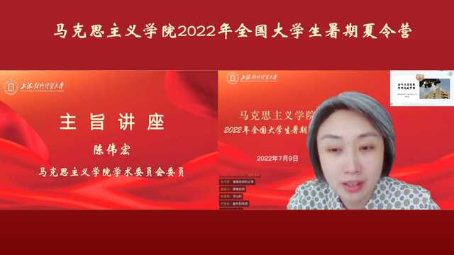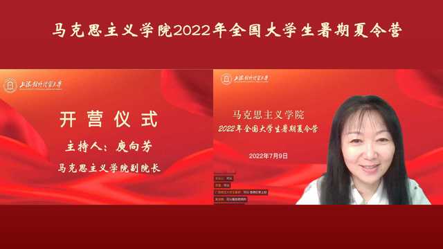 为推动马克思主义理论学科建设,帮助全国高校大学生深入了解我校马克思主义学院以及马克思主义理论学科,鼓励更多优秀大学生报考我校马克思主义学院,7月9日,我校马克思主义学院在线举办2022年全国大学生暑期夏令营。本届夏令营吸引了来自河南大学、黑龙江大学、天津师范大学、辽宁师范大学、河南师范大学、广西师范大学、云南农业大学、上海政法学院等全国40余所高校的大学生参加。马克思主义学院领导班子全体成员和部分教师代表出席开营仪式,开营仪式由马克思主义学院副院长庾向芳主持。