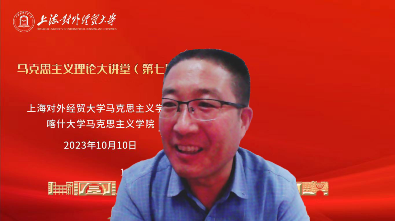 讲座采用腾讯会议和视频号形式直播。上海对外经贸大学马克思主义学院院长秦淑娟教授主持会议,喀什大学马克思主义学院党委书记牛军政出席会议,上海对外经贸大学和喀什大学师生420余人线上聆听了讲座。