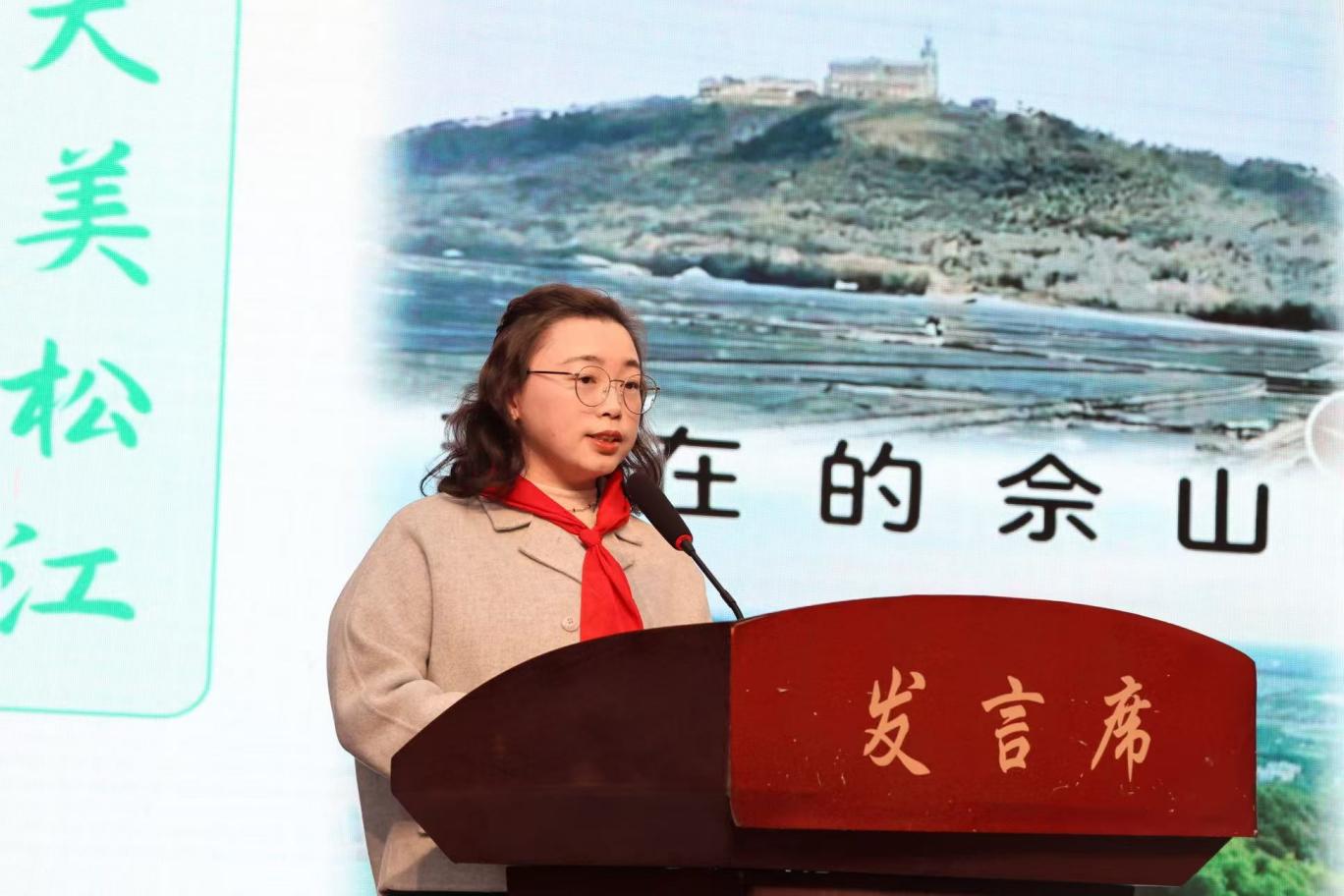 “作为本次暑期实践活动的指导老师,我欣喜于队员们主动探寻家乡变迁与发展,他们用小脚丫去丈量这片美丽的土地,用小眼睛去发现家乡变化、祖国繁荣。”上海对外经贸大学附校花园分校唐懿懿老师在分享会上这样说道。