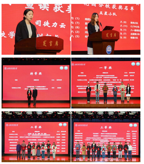 上经贸大附校分校学生代表梦之翼小队、书香小队、哲天宸小队,大学生代表团队代表马克思主义学院宋洋、国际经贸学院徐嘉欣与工商管理学院扎西央宗、校外实践团队代表喀什大学马克思主义学院李婉莹结合各自小组的调研成果进行了汇报与感想分享。