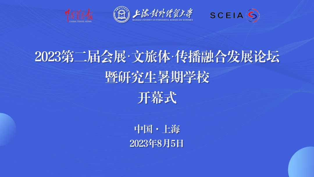 8月5日,由上海对外经贸大学、《中国贸易报》社和上海市会展行业协会主办,上海对外经贸大学会展与传播学院、上海对外经贸大学研究生院和长三角会展研究院承办的2023第二届会展·文旅体·传播融合发展论坛暨研究生暑期学校开幕式和论坛主旨演讲在线顺利举行。