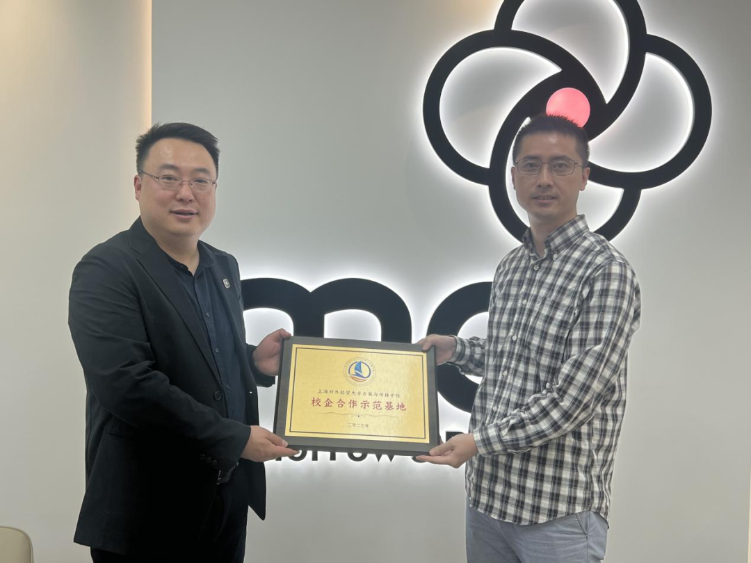 考察过程中,张一博代表学院向两家企业分别颁发了“上海对外经贸大学会展与传播学院校企合作示范基地”的铭牌。
