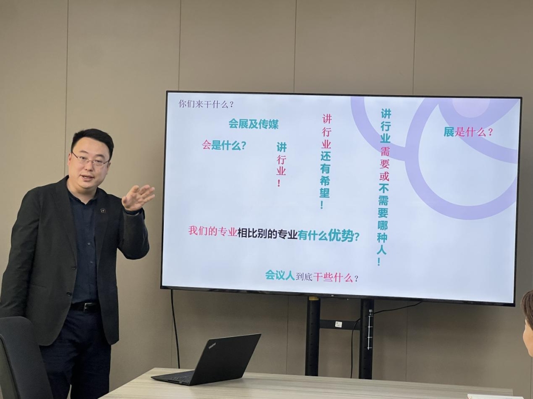 在迈氏会展考察时,张健介绍了迈氏会展往年的优秀行业案例以及与学院在人才培养合作方面的成果,以丰富的行业经验剖析和展望了会展行业的未来发展并分享了迈氏在人才招聘、晋升过程的考核标准,勉励同学们未来踏入工作中要做到敢想敢做、与时俱进、不断提升、为人善良。