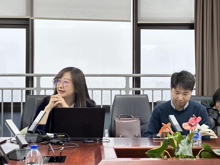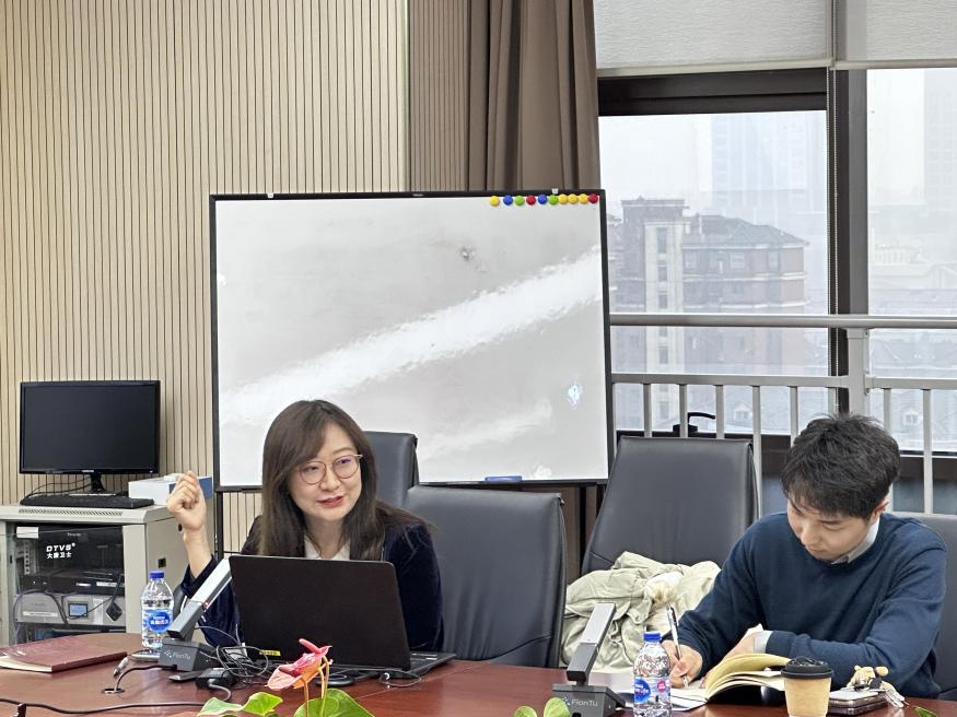 参观结束后,师生们与融媒体中心工作人员在会议室举行了专题分享会。首先,主持人万涛向师生们介绍了广播电视节目制作。他结合自己的亲身工作经历,以融媒体中心作品《校长来啦》《人才来啦》等为例,从栏目的策划、前期调研、主持人准备工作等方面,揭示了广播电视节目制作的背后流程、直播可视化的打造、全媒体内容生产的分发。他还给同学们提出了两点自己的从业心得:广告电视节目制作要结合不同的内容做不同渠道的分发;节目呈现和拍摄制作是有出入的,亲自实拍比纸上分析更重要。