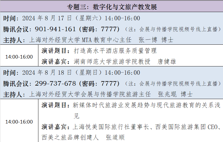 8月11日,由上海对外经贸大学、《中国贸易报》社和上海市会展行业协会主办,上海对外经贸大学会展与传播学院、上海对外经贸大学研究生院和长三角会展研究院承办的2024第三届“会展·文旅体·传播”融合发展论坛暨研究生暑期学校的“专题二:新传产业发展与人才培养”第二场论坛主题讲座在线顺利举行。上海大学上海市舆论研究所主任赵士林教授担任演讲嘉宾,论坛由上海对外经贸大学会展与传播学院新闻与传播系主任狄丹博士主持。