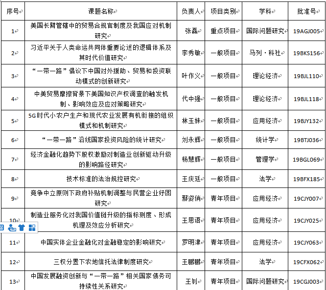 7月12日,全国哲学社会科学规划办公室正式公布了2019年国家社科基金项目年度项目、青年项目和西部项