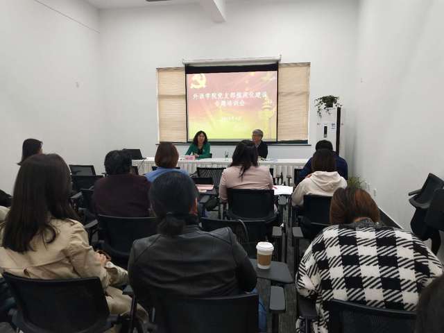 为进一步加强基层党支部的规范化建设,更好地发挥党支部在教育党员、管理党员、监督党员和组织群众、宣传群众、凝聚群众、服务群众的职责,4月12日,外语学院党委举办党支部规范化建设专题培训会,邀请学院关工委老同志戴金华对《中国共产党支部工作条例(试行)》进行了学习解读,拉开学院党支部规范化建设专题教育的序幕。外语学院党委副书记(挂职)谢峰、支部书记、支部委员参加培训,培训会由学院党委书记张嵘主持。