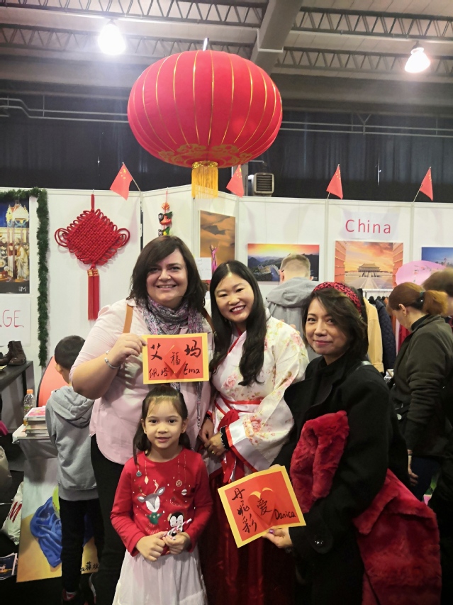在前期义卖品的准备中,孔子学院教师齐上阵,精心设计并手工制作了圣诞和新年贺卡、手工灯笼、手链和多幅书画作品。这些充满中国文化元素和教师们爱心的物品在义卖当天引起了现场各国朋友的浓厚兴趣。圣诞和新年即将到来,因此,手工制作并现场书写中文祝福语的贺卡倍受青睐,许多当地朋友都想用这样一张特别的贺卡给家人和朋友送上节日祝福。