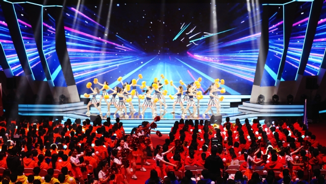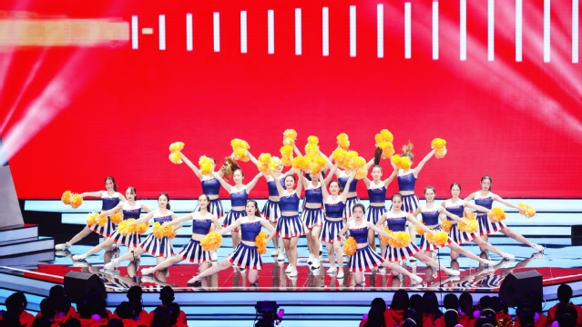 本次活动由中共中央市教卫工作委员会、市教委主办,上海财经大学、复旦大学承办。上海市副市长陈群等领导出席。现场的18个学生方阵围绕“歌唱祖国”“校歌嘹亮”“青春颂歌”“畅想未来”4个主题分别进行了拉歌表演。我校165名学生生动演绎了“青春颂歌”环节的曲目《你笑起来真好看》,洋溢着青春的气息,活力四射,点燃全场。我校与上海第二工业大学合作,带来了由40人组成的啦啦操表演《最好的舞台》,将全场的氛围推向高潮。“台上一分钟,台下十年功”,整齐划一的动作,设计精美的造型背后,是队员们反复的排练和精心的打磨,她们以青春之名,也在人生的舞台上追求着“最好”!