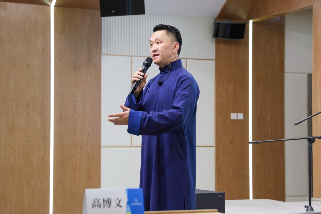 5月27日下午,一场别开生面的非遗文化赏析课在上海对外经贸大学松江校区图文信息大楼213室举行。上海评弹团团长高博文带领一级演员姜啸博、陆嘉玮、朱琳、青年演员姚依依为学校师生作主题为“品江南评弹,听最美声音”的评弹演出与赏析。本次活动为上海市教委高雅艺术进校园项目,也是学校第63期博文讲堂。