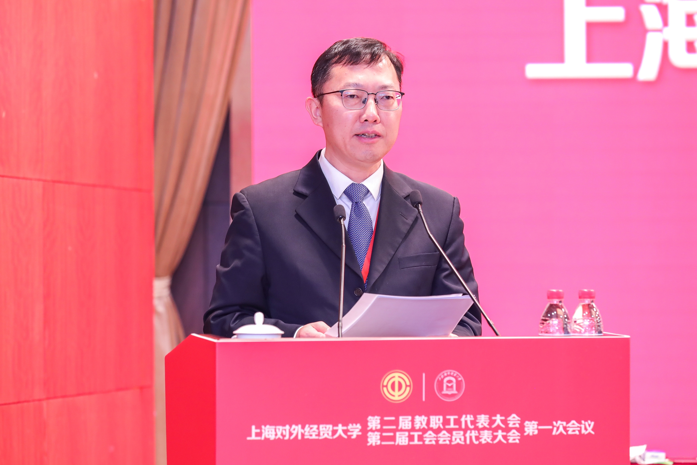 Yin Yao delivered a speech at the closing ceremony. On behalf of the University Council of SUIBE, he congratulated to the success of the meeting and the newly elected members of the two committees of the second trade union, and expressed his heartfelt thanks to the delegates who performed their duties.