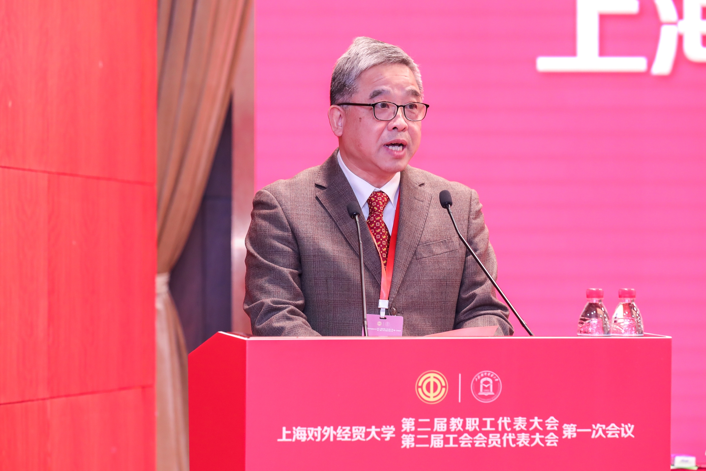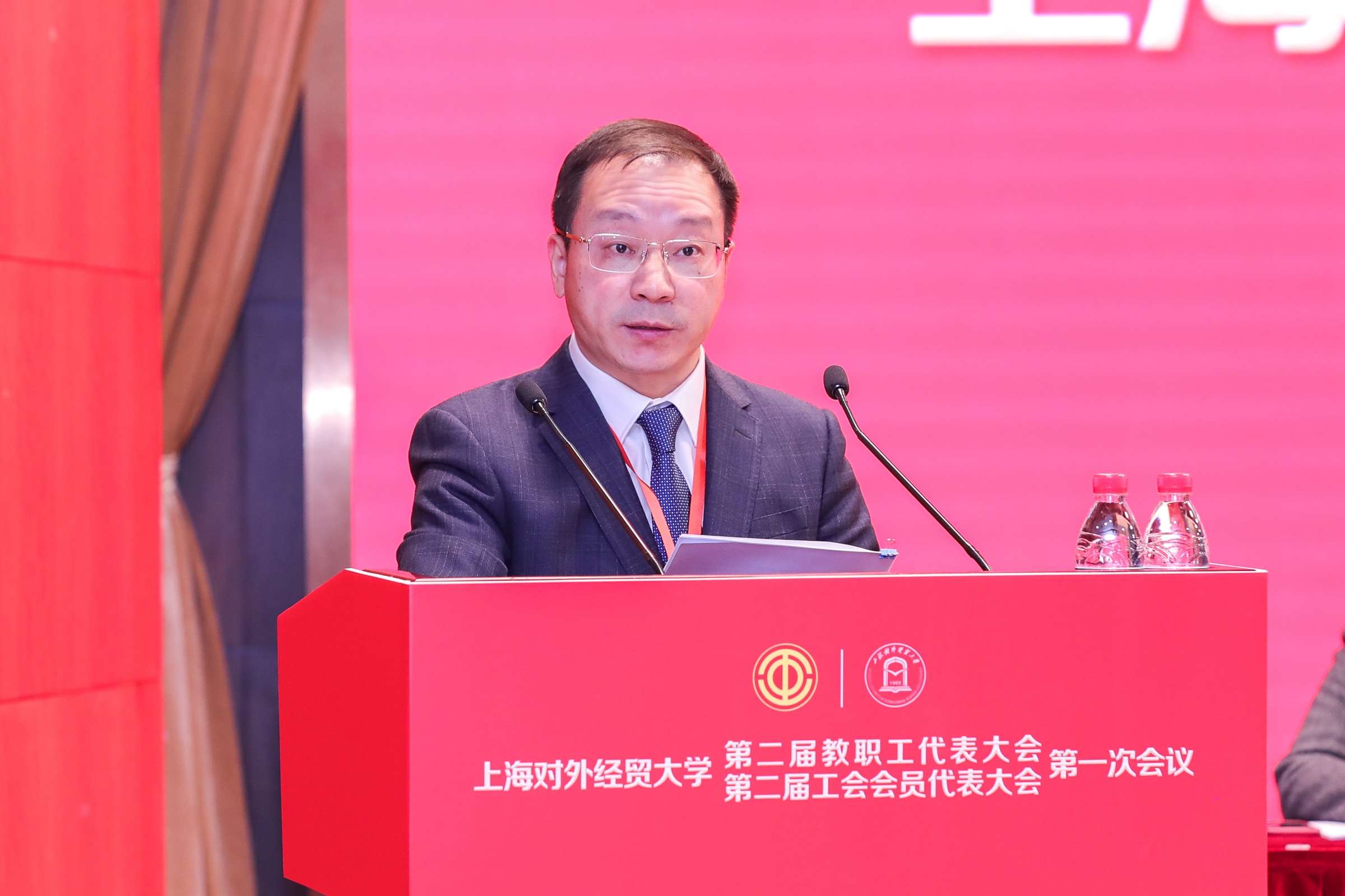 Wang Rongming delivered a report on the administrative work of SUIBE. The report reviewed and summarized the development of SUIBE since 2020, put forward the key tasks of the university in 2022, and specified the main ideas and measures to protect the rights and interests of all faculty and students of SUIBE.