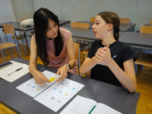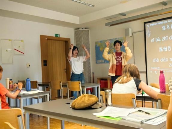 在当地两名本土汉语教师卡迪娅(Katja)和安妮雅(Anja)的带领下,海外实习团队的小老师们,以“一对二”或“一对三”的分组形式,帮助不同水平的学员实现了中文语言能力的阶梯式提升。