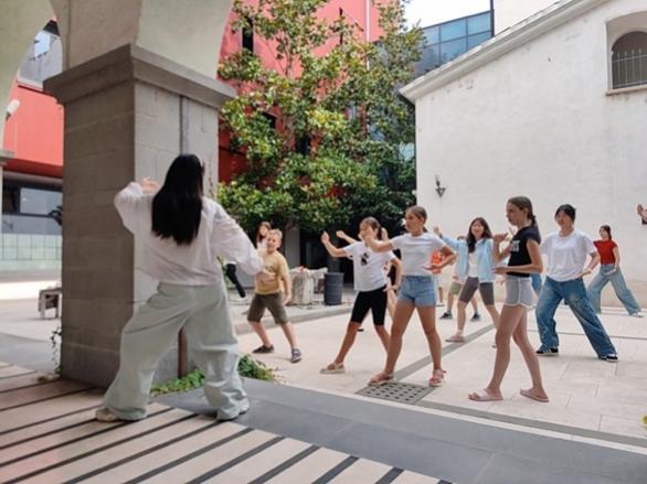 每日清晨,师生共习太极二十四式,野马分鬃、白鹤亮翅、搂膝拗步、手挥琵琶,当地孩子们在实习团队小老师们的带领下,初次体验了太极拳的魅力:武术不仅仅是招式,更是传递着刚柔并济的东方哲学。