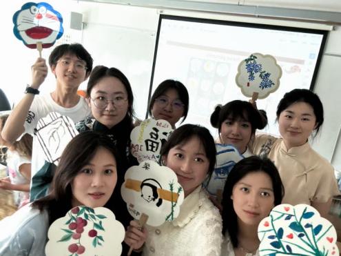 如何将风筝的轻盈、鸡毛毽的灵动、拨浪鼓的童趣、团扇的雅致深入浅出地表达传递?海外实习团队和当地教师一起不断进行探索。当看到孩子们将中国元素绘入扇面和鼓面,当听到《热爱105°C的你》被孩子们自信唱响,文化共鸣和大同之美此刻正得以具象化。