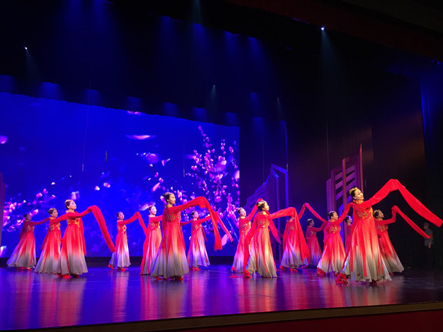 舞蹈《云袖凉裳》由吴梦来老师编舞并领舞。健美舞蹈协会共有18名女教职工参加表演,她们分别来自教学一线及学校各个职能部门,克服工作的繁忙,利用休息时间积极参与排练。舞蹈以动听的歌曲《凉凉》为背景,用飘逸的水袖和柔美的舞姿表现出饱含深情与古典的风韵,舞美场景和优美表演给大家留下了深刻的印象,在一袭舞动的云袖,和朵朵飘扬的裙裾间博得满堂喝彩,更展现出我校女教师的风采与英姿。(撰稿人:李耿华)