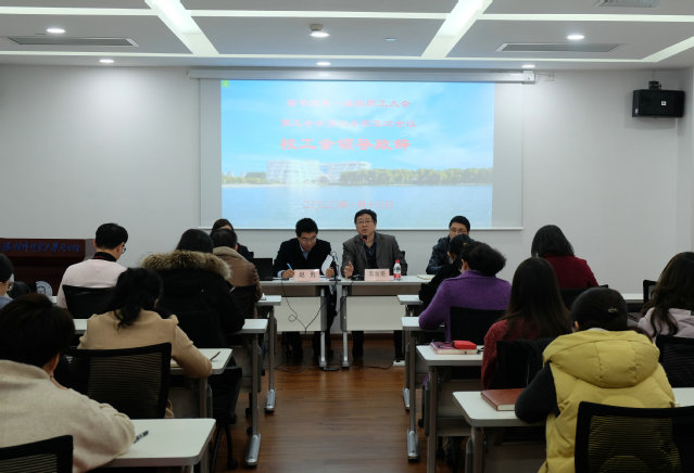 2020年1月13日下午,图书馆召开第一届教职工大会暨工会会员大会第五次会议,校工会常务副主席郭新顺出席会议并致辞,图书馆领导班子成员及全体教职工共计34人参加会议,会议由图书馆副馆长谢蓉主持。