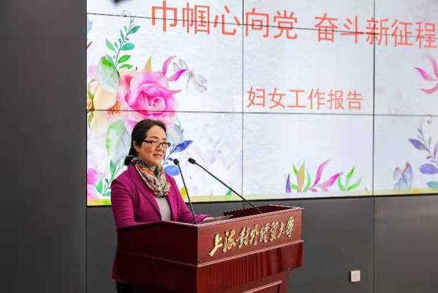 会上,2020年度上海市“三八”红旗集体申报单位代表国际商务外语学院党委书记张嵘、2019年度上海市教育系统巾帼建功标兵国际经贸学院沈克华副教授、上海工会四星妈咪小屋及校优秀妇女小家单位代表图书馆直属党支部书记王群分别作了交流发言。