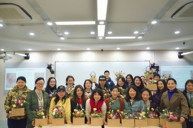 通过讲解各位老师了解到用于鲜花花艺造型的花材根据花材的形态可分为团状花材、线状花材、散状花材和特殊形态花材四类。