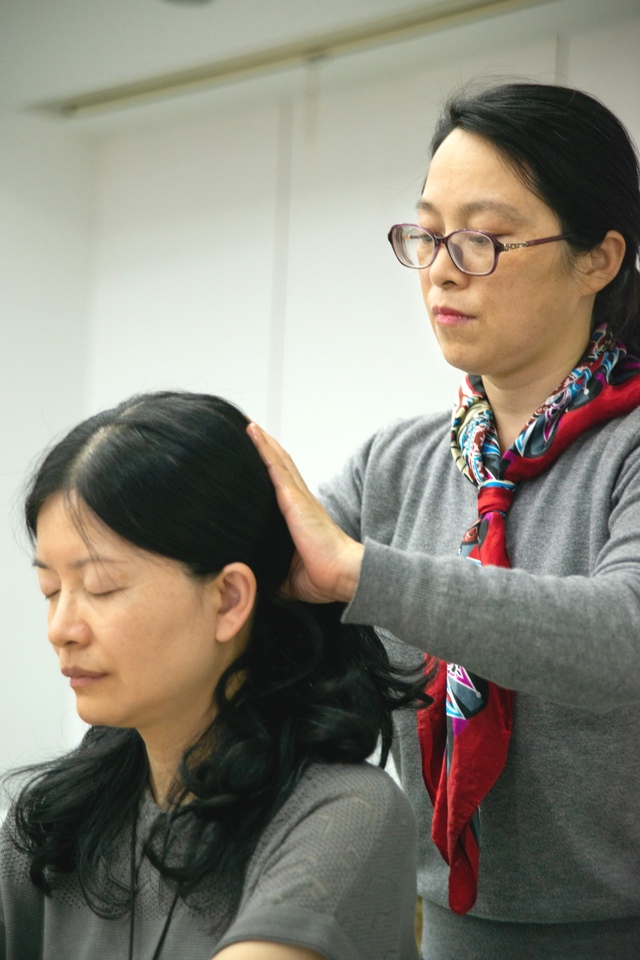 活动现场,最令人兴奋的就是体验各种不同的精油了。比如野橘精油具有浓郁的水果香味,薄荷精油给人带来清凉和提神的感受,顺畅呼吸精油在被嗅吸后肺部、腹部都感觉清新、舒畅,而乐释精油可安定情绪、恢复好心情。现场教师两两组合,互相体验头疗用油和肩颈按摩。悠扬的音乐声使大家仿佛置身于美丽的乡村;淡淡的清香,让大家感受到轻松和愉悦。